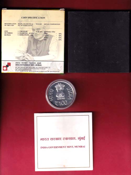 “Birth Anniversary of Atal Bihari Vajpayee (1924–2018)” Commemorative Coin Set (2018) issued by the India Government Mint, Mumbai. (100 rupee) – FC6625