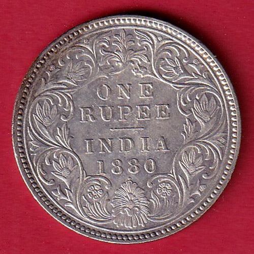 british india (0/1 DOTS) 1880 victoria empress one rupee silver coin- FC7611