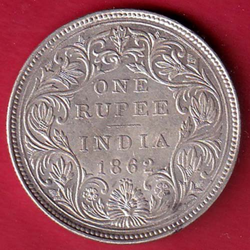BRITISH INDIA “0/4 DOTS ” 1862 VICTORIA QUEEN ONE RUPEE SILVER COIN – FC8025
