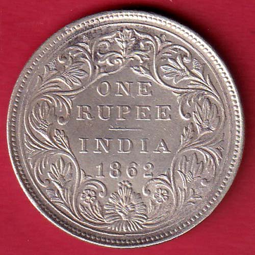 BRITISH INDIA “0/4 DOTS ” 1862 VICTORIA QUEEN ONE RUPEE SILVER COIN –FC8065