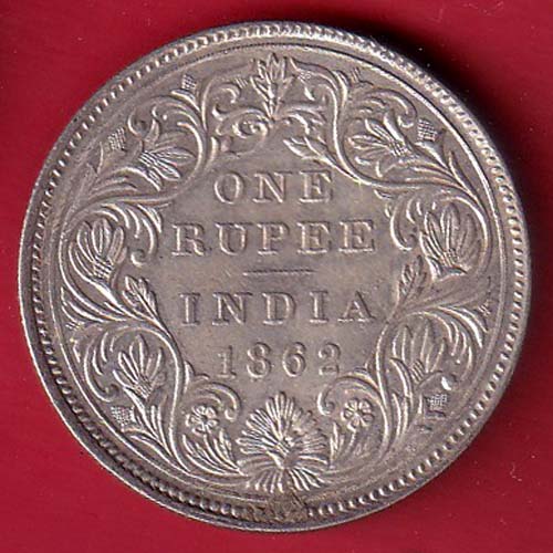 BRITISH INDIA 1862 VICTORIA QUEEN ONE RUPEE BEAUTIFUL SILVER COIN:- F8270