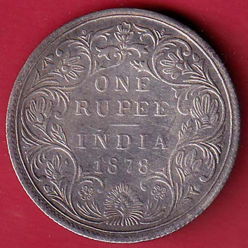 BRITISH INDIA 1878 VICTORIA EMPRESS ONE RUPEE SILVER COIN -FC8504