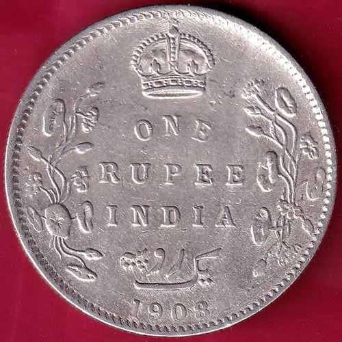 British India 1908 Edward Vii king & Emperor One Rupee Silver coin– FB3984