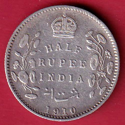 british india 1910 edward HALF RUPEE silver coin :- FC7308