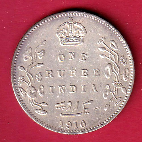 BRITISH INDIA 1910 EDWARD VII KING EMPEROR ONE RUPEE SILVER COIN :- FC8149