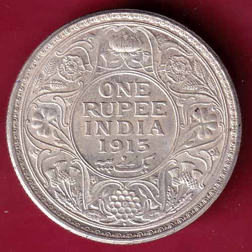 British India 1913 Bombay mint George V ONE RUPEE Silver coin- FC476