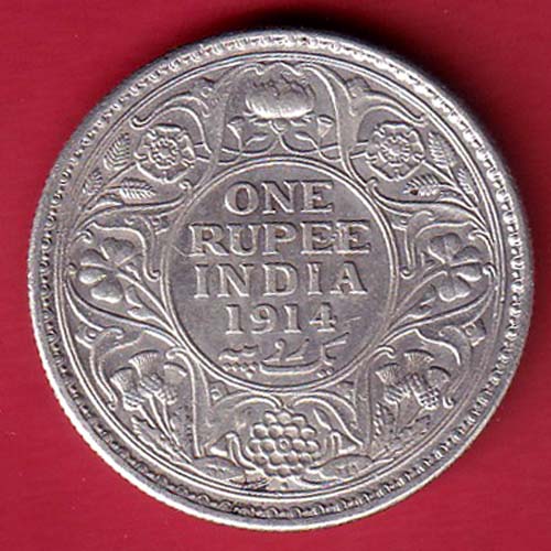 British India 1914 Bombay Mint George V King One Rupee Coin – FC7241