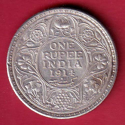 British India 1914 Bombay Mint George V King One Rupee silver Coin –FC8290