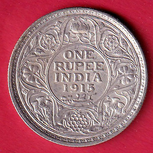British India 1915 George v One Rupee silver coin :- FC8148