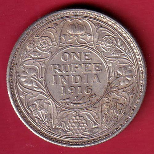 British India 1916 Bombay mint George V one Rupee Silver Coin -F9064