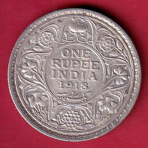 British India 1918 Bombay Mint George v One Rupee silver coin-F9060