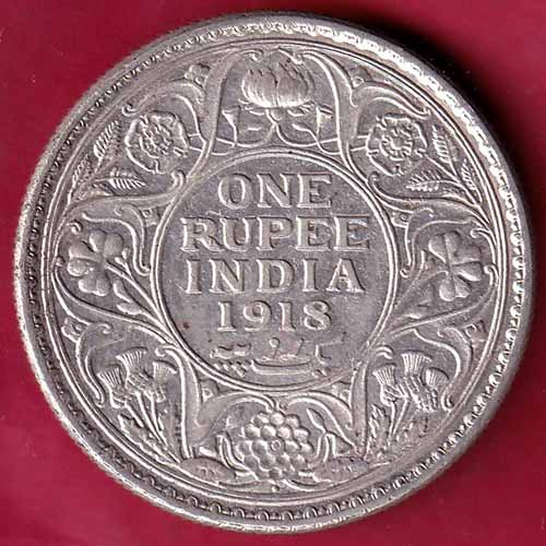 British India 1918 Bombay Mint George v One Rupee silver coin – FB3954