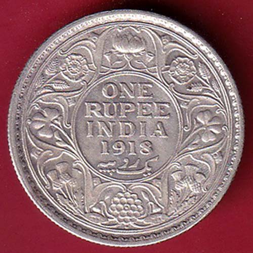 British India 1918 Bombay Mint George v One Rupee silver coin :- FC6366