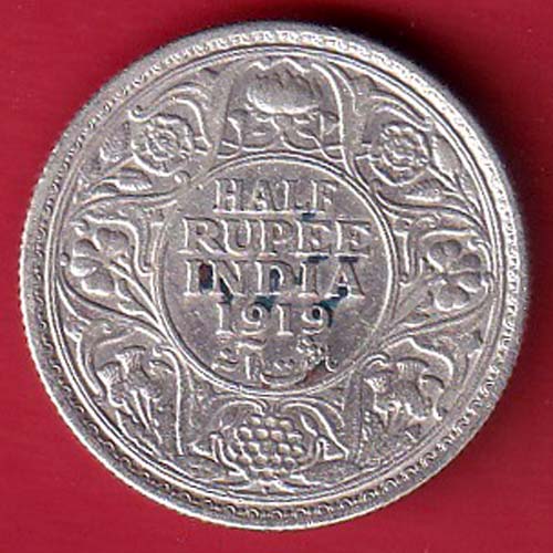 British India 1919 Bombay Mint George V King Emperor Half Rupee – F8082