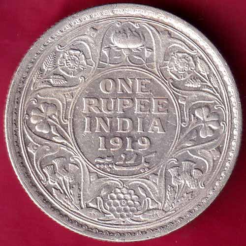 British India 1919 bombay mint George v One Rupee Silver coin–FB2708