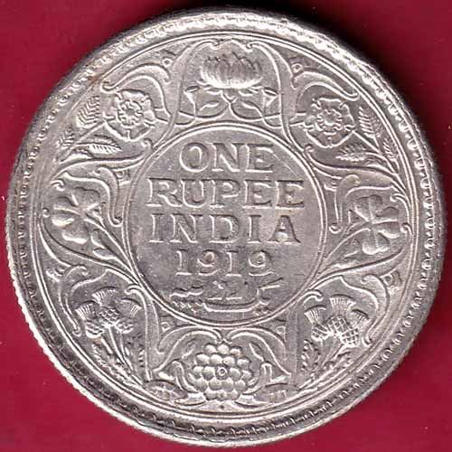 British India 1919 bombay mint George v One Rupee Silver coin– FB4018