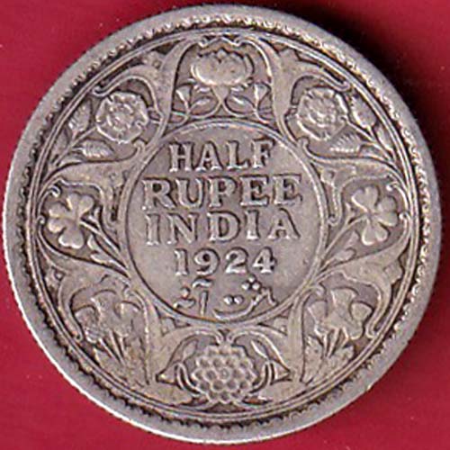 British India 1924 George V king Emperor HALF Rupee silver coin– FC6870