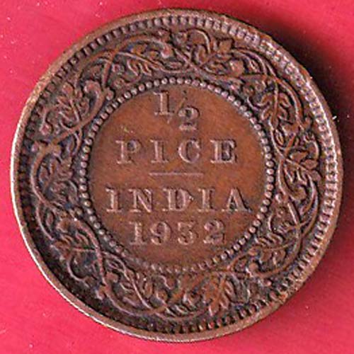 BRITISH INDIA 1932 GEORGRE V KING 1/2 PICE COPPER COIN–F9211