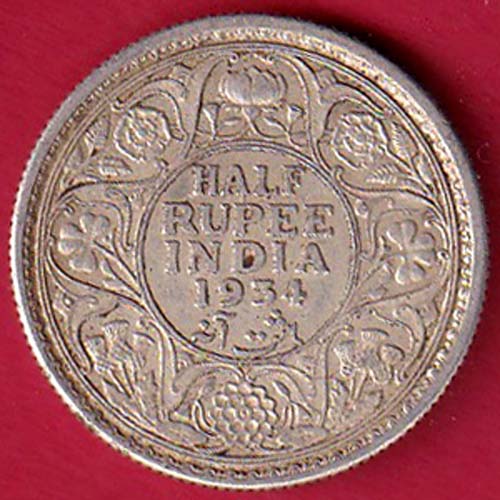 British India 1934 bombay mint George V king Emperor HALF Rupee silver coin– FC6869