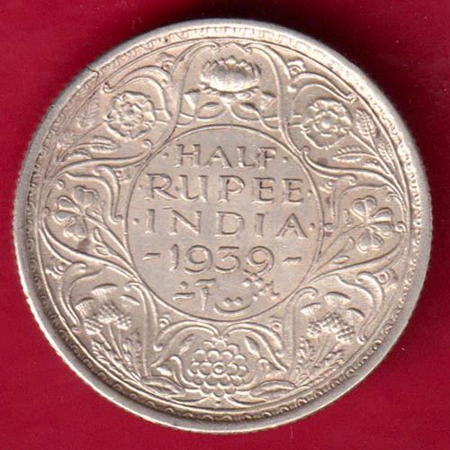 British India 1939 Bombay Mint George VI Half Rupee Silver Coin-FA3468