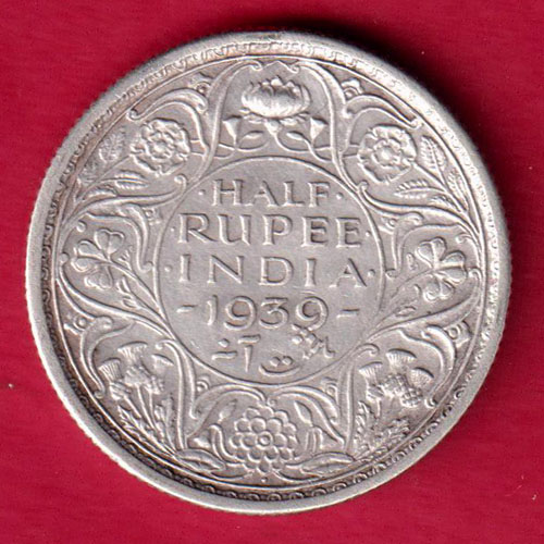 British India 1939 George VI Bombay Mint half Rupee Silver Coin-FA3603