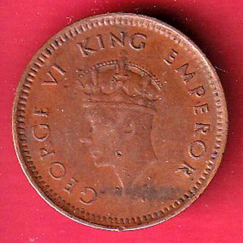 BRITISH INDIA 1939 GEORGRE VI KING 1/2 PICE COPPER COIN:- F8275