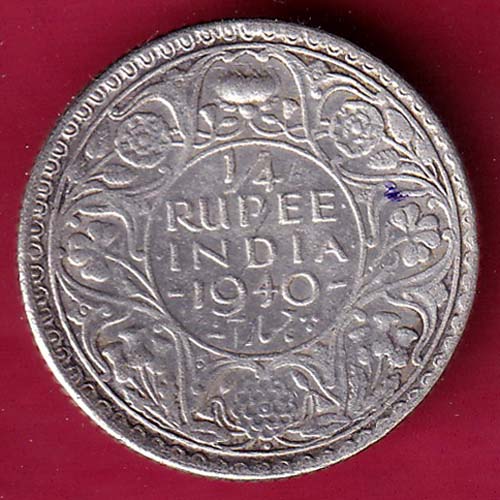 BRITISH INDIA 1940 GEORGE VI BOMBAY MINT 1/4 RUPEE SILVER COIN – F4191