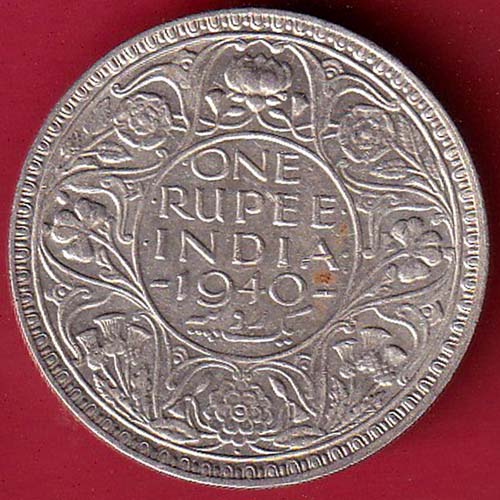 BRITISH INDIA 1940 GEORGE VI BOMBAY MINT ONE RUPEE SILVER COIN:- FC7015
