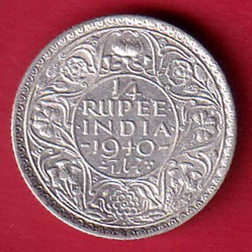BRITISH INDIA 1940 GEORGE VI BOMBAY MINT VI 1/4 RUPEE SILVER COIN– FC6475