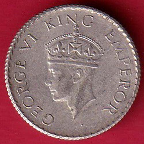 BRITISH INDIA 1940 GEORGE VI BOMBAY MINT VI 1/4 RUPEE SILVER COIN :- FC6798