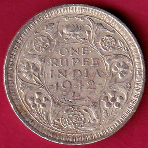 British India 1942 George VI Bombay Mint One Rupee Silver Coin- FB1231