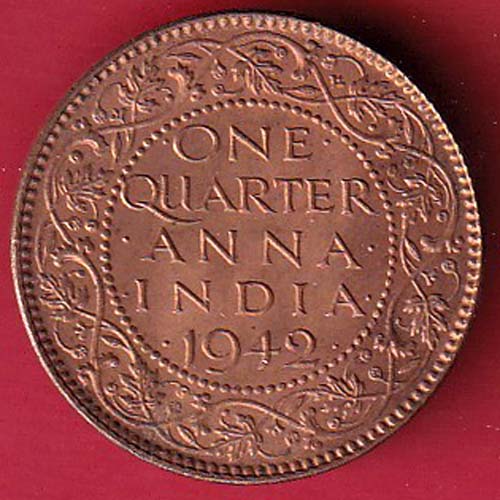BRITISH INDIA 1942 GEORGE VI ONE QUARTER ANNA- F7401
