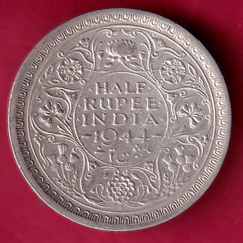 BRITISH INDIA 1944 BOMBAY MINT GEORGE VI HALF RUPEE BEAUTIFUL SILVER COIN–FB5563