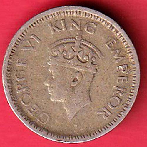British India 1944 lahore mint George VI King 1/4 rupee silver coin- FC6997