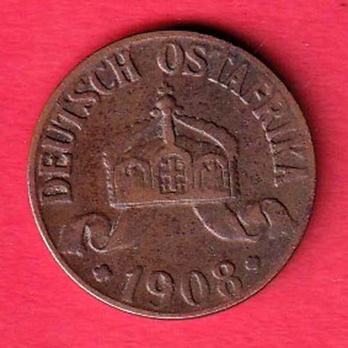 Deutsch Ostafrika 1908 ONE Heller copper coin-F9089