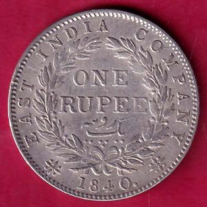 EAST INDIA COMPANY 1840 CONTINIOUS LEGEND VICTORIA QUEEN 1 RUPEE SILVER COIN – F2849