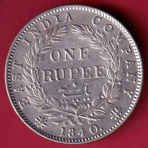 EAST INDIA COMPANY 1840 CONTINIOUS LEGEND VICTORIA QUEEN 1 RUPEE SILVER COIN – F8480