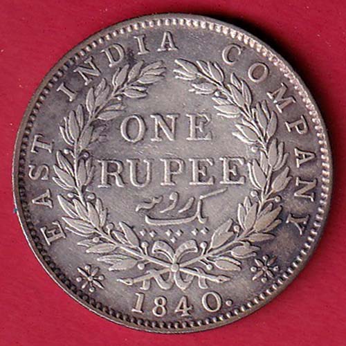 EAST INDIA COMPANY 1840 CONTINIOUS LEGEND VICTORIA QUEEN 1 RUPEE SILVER COIN– FC7593