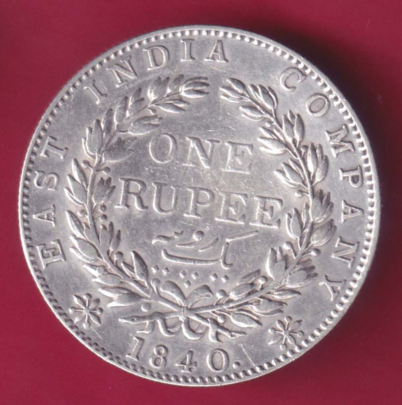 East India Company 1840 Continuous Legend 35 berries Victoria Queen One Rupee :- FA9507
