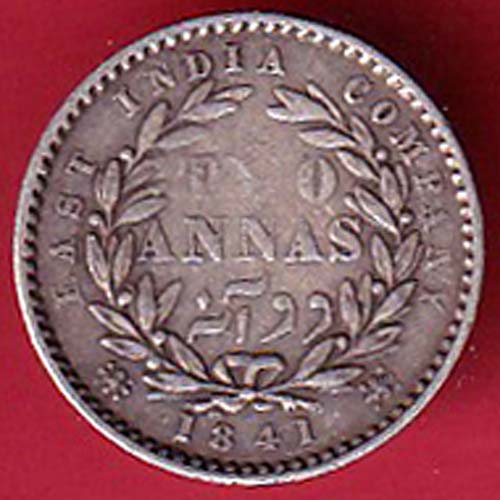 EAST INDIA COMPANY 1841 DIVIDED LEGEND VICTORIA QUEEN two annas SILVER COIN – FC6269