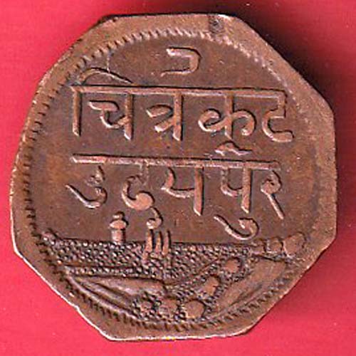 Mewar State Chitrakut Udaipur Dosti Londhon ONE Anna copper coin:- FC5749