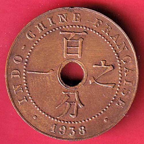 French Indochina 1 Cent 1938 COPPER COIN – FC7855