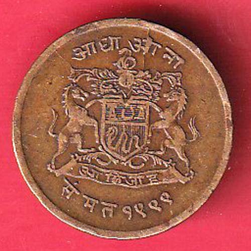 Gwalior State Shree Jivaji Rao Shinde half anna coin–f9185