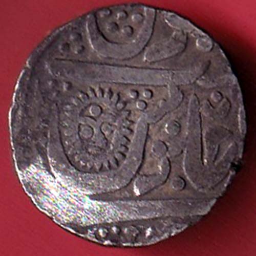 INDORE STATE SUN FACE INO SHAH ALAM II MALHAR RAO ONE RUPEE COIN– FC6339