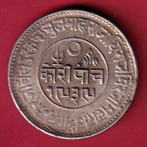 Kutch State AD 1882/ VS 1939 Shree Khengarji 5 kori silver coin–FC6644