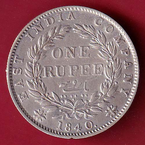 “LUSTER CONDITION” EAST INDIA COMPANY 1840 CONTINIOUS LEGEND VICTORIA QUEEN 1 RUPEE SILVER COIN– FC6948