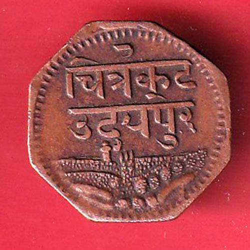 Mewar State Chitrakut Udaipur Dosti Londhon ONE Anna copper coin – F8643