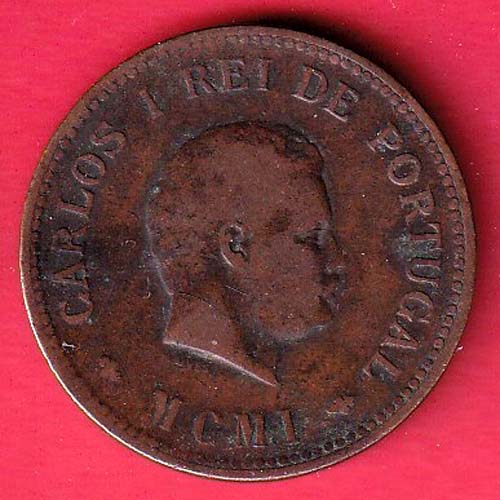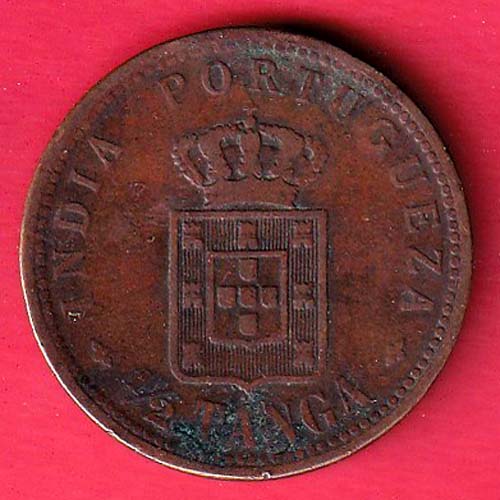 Portuguese india ½ Tanga Charles I Lisboa mint copper coin :- FC7939