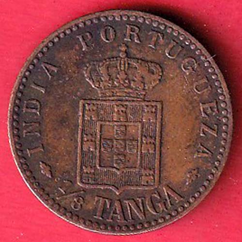 Portuguese india 1/8 Tanga Charles I Lisboa mint copper coin :- FC7523