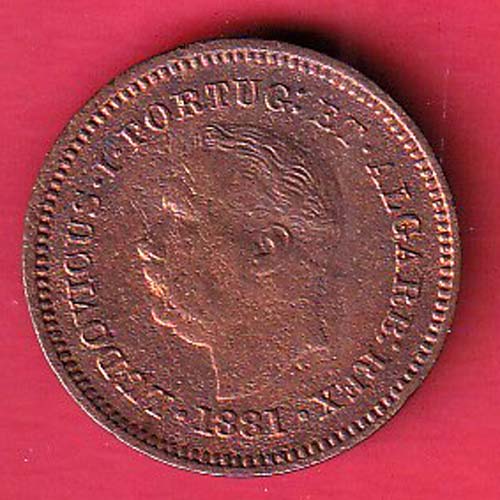 Portuguese India 1881 LUDOVICUS.I quarto de tangka copper coin :- FC7941